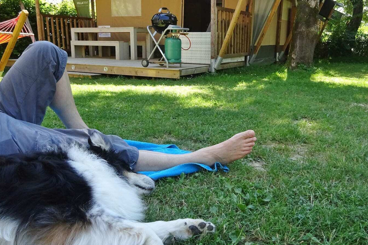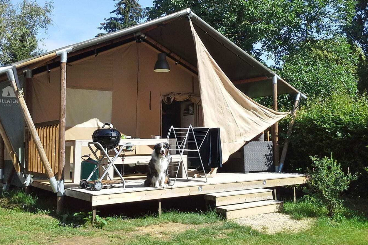 La terrazza di un Villatent è bella e ariosa quando fa caldo, ma può essere piuttosto fredda per sdraiarsi di notte quando rinfresca. Portate quindi con voi una bella coperta spessa per far dormire il vostro cane.