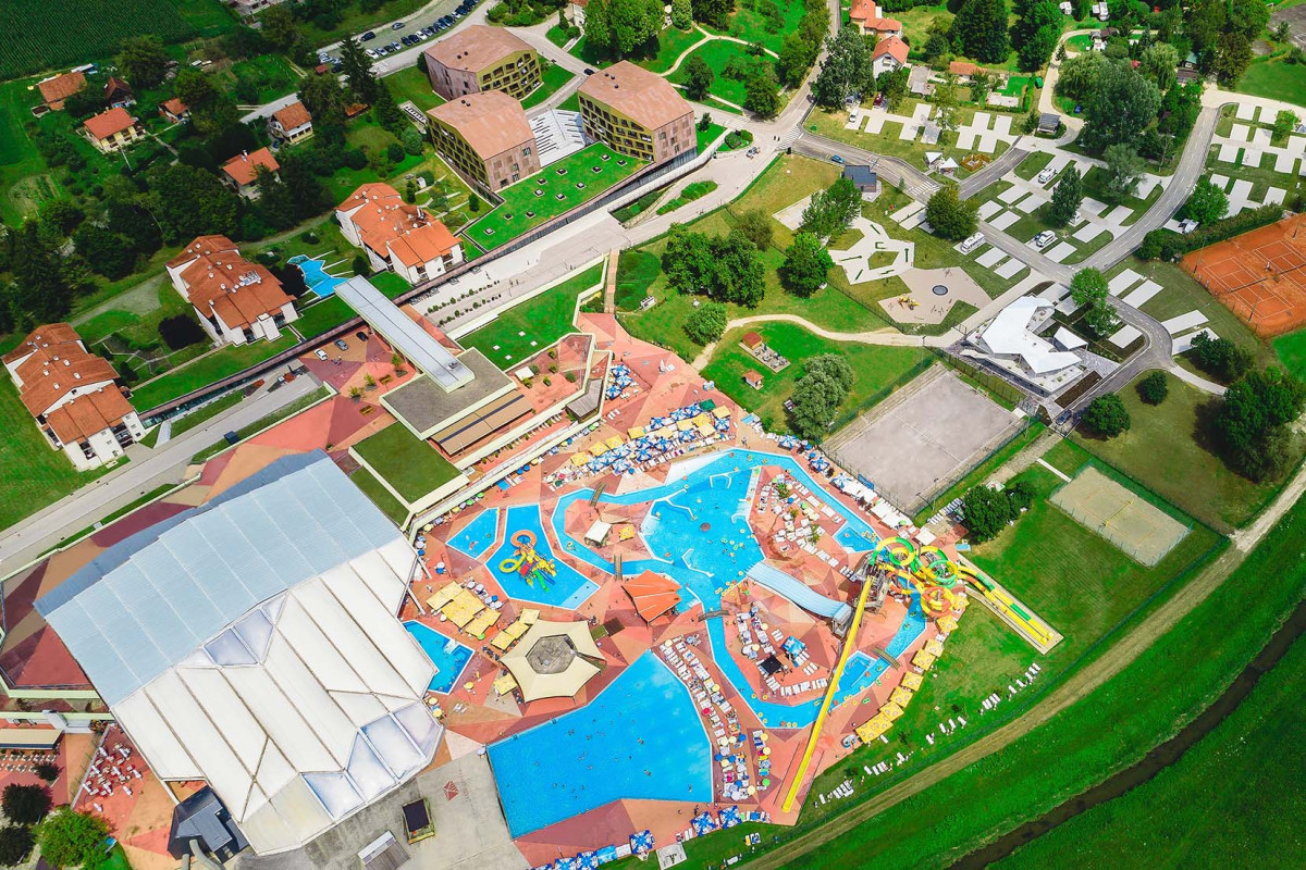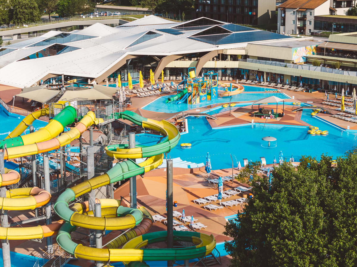 Il Camping Terme Tuhelj è un moderno campeggio per famiglie nel verde nord della Croazia (Hrvatsko Zagorje), vicino al confine con la Slovenia. Il divertimento in acqua e il relax sono al centro dell'attenzione. Proprio accanto al campeggio si trova il parco acquatico termale Water Planet. Come ospiti, avrete libero accesso a otto piscine interne ed esterne, a scivoli e a una piscina a onde. Per i più piccoli c'è una piscina per bambini riscaldata e poco profonda. In loco troverete anche una piscina benessere privata con massaggi in acqua e una piscina per bambini con giochi d'acqua.